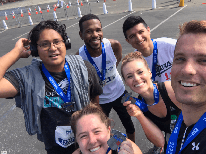 Those feelings sent me spinning, out of breath, and panting. I quickly changed the song in my headphones and took a look around me. Thousands of other runners were in the exact same position as me. How could I be so quick to say I failed when I was there running and giving it everything I had? Yes, it was a hilly course and hardest run in a long time. Yes, I was running slower, but I was not alone...heck some of the Dubsado team were running too. In fact, right after I started feeling like that I ran into Christian (QA Manager at Dubsado) and we high five-d. That was just the push I needed to continue on. That support and a simple smile reminded me that I am not alone.